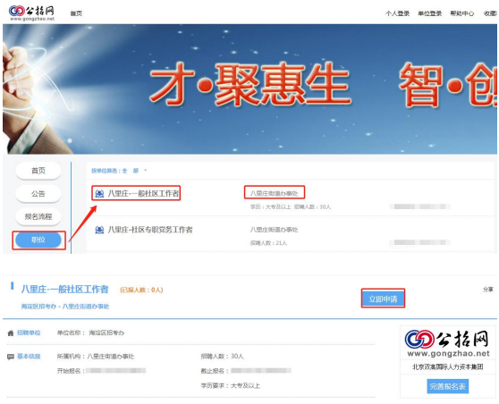 海淀区2023年面向社会公开招考社区工作者考试,考生需在指定渠道——公招网进行网上报名等相关工作,现将具体操作步骤说明如下:
