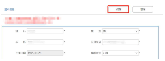 7.保存个人信息。信息编辑完成后,点击“保存”;