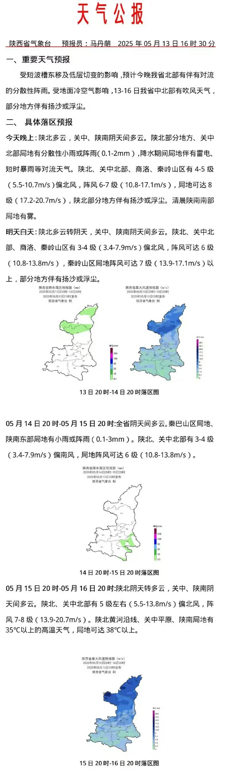 陕西省气象台5月13日16时30分发布天气公报↓↓↓