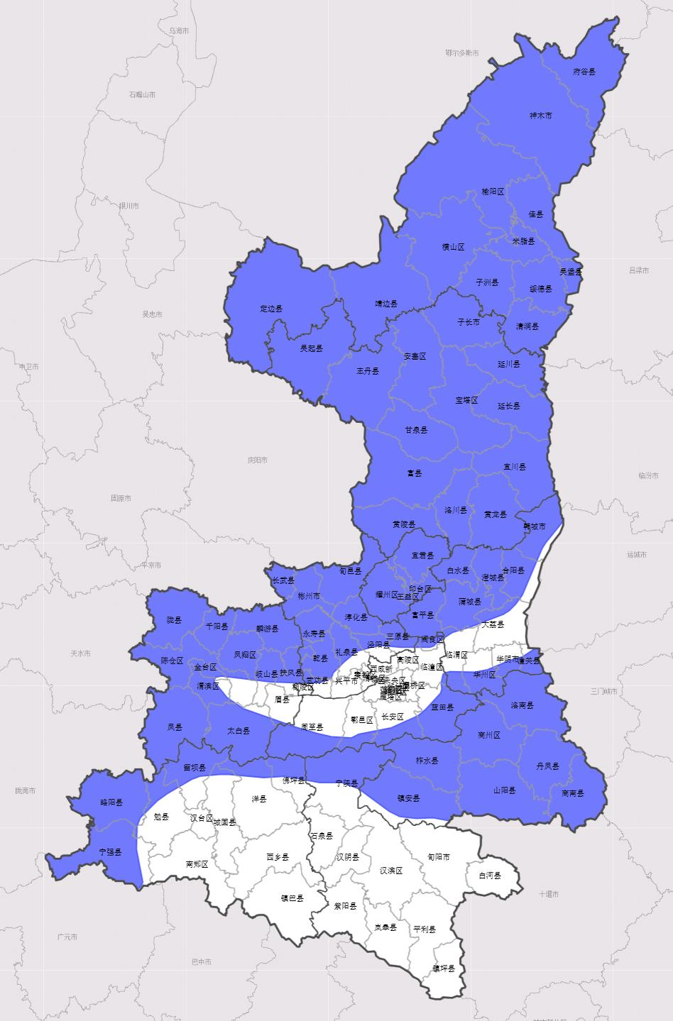 西安市阎良区、临潼区、长安区、鄠邑区、蓝田县、周至县,宝鸡市渭滨区、金台区、陈仓区、扶风县、眉县、岐山县、凤翔区、太白县、麟游县、千阳县、陇县、凤县,咸阳市武功县、三原县、泾阳县、礼泉县、乾县、永寿县、彬州市、淳化县、旬邑县、长武县,铜川市王益区、印台区、耀州区、宜君县,渭南市临渭区、韩城市、华阴市、华州区、潼关县、大荔县、澄城县、合阳县、蒲城县、富平县、白水县,延安市宝塔区、安塞区、黄陵县、黄龙县、宜川县、洛川县、富县、甘泉县、吴起县、志丹县、子长市、延川县、延长县,榆林市榆阳区、横山区、神木市、府谷县、定边县、靖边县、绥德县、米脂县、佳县、吴堡县、清涧县、子洲县,汉中市城固县、洋县、勉县、略阳县、宁强县、留坝县、佛坪县,安康市宁陕县,商洛市商州区、洛南县、丹凤县、商南县、山阳县、镇安县、柞水县,杨凌示范区杨陵区,另外,陕北部分地方有扬沙或浮尘天气,请注意防范。