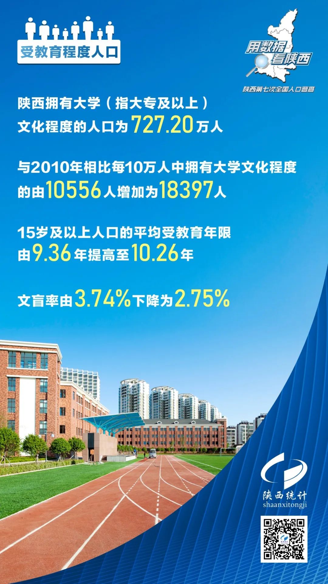 15岁及以上人口的平均受教育年限提高了0.9年,每10万人口中拥有的大学及以上受教育程度的人数是18397人,拥有大学文化程度的人口是2010年的1.74倍,在全国排位较2010年的第7位提升1位,居第6位,仅次于江苏省。全省文盲人口减少30.89万人,文盲率下降了0.99个百分点。