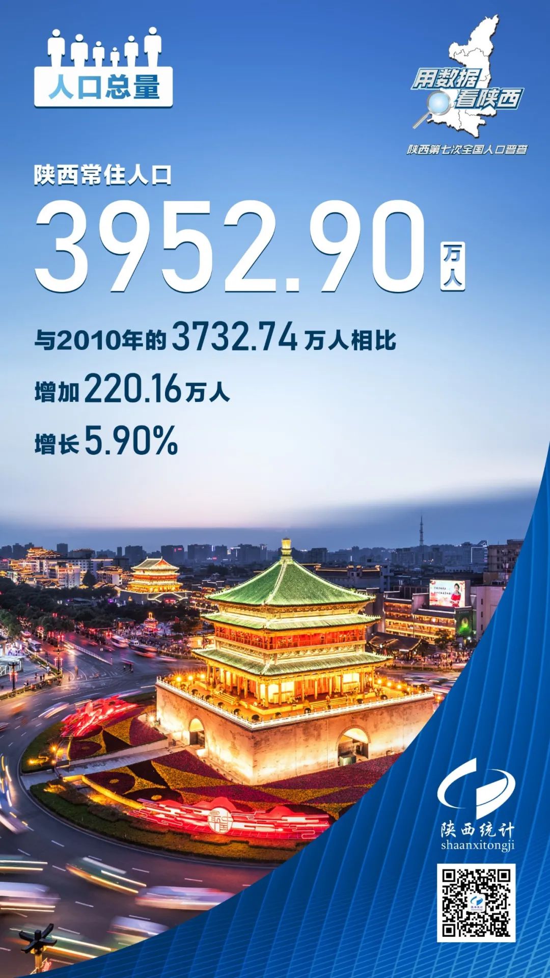 过去10年间,陕西省人口实现了从3700万到3900万的跨越,人口总量增加了220多万人。增速高于全国0.52个百分点,年均增速高于全国0.04个百分点,净增人口数量在全国排第14位,常住人口总量在全国排第16位,与10年前第六次人口普查位次持平,反映出近十年陕西人口发展较为稳定。