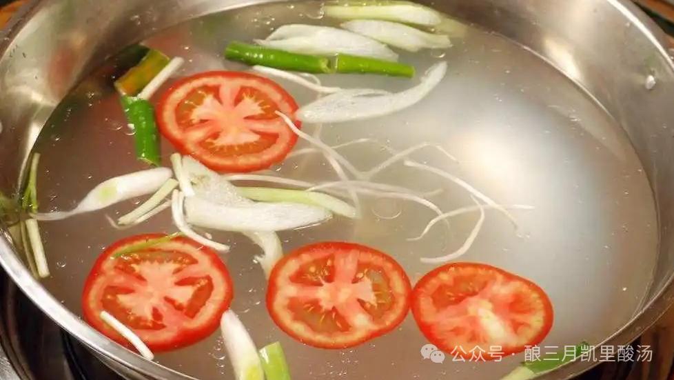 酸汤面/粉——炒好的西红柿加入灵魂红酸汤,水开后直接加入面/粉。
