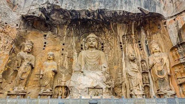 龙门石窟位于洛阳市南郊的龙门山口处,从北魏太和十九年开凿,迄今已有1500余年的历史,最大的佛像卢舍那大佛高17.14米,最小的佛像仅有2厘米,是东方雕刻艺术的瑰宝,它和敦煌莫高窟、大同云冈石窟,共同组成我国著名的三大石窟艺术宝库,是世界文化遗产。