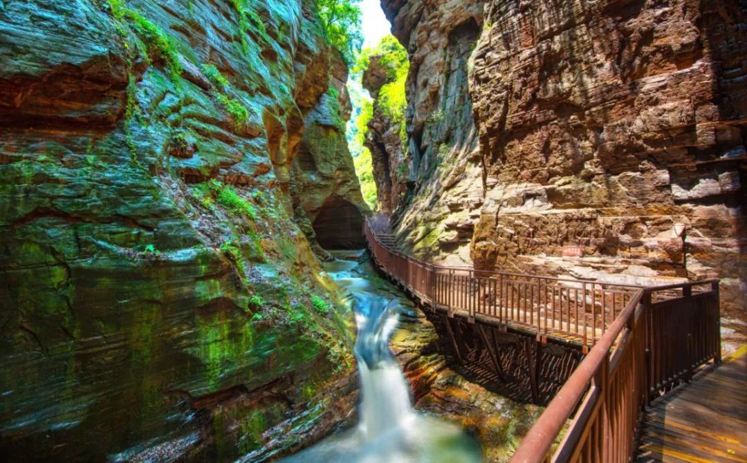 龙潭大峡谷是一条以典型的红岩嶂谷群地质地貌景观为主的峡谷景区,这里经过十二亿年的地质沉积和260万年的水流切割旋蚀所形成的高峡瓮谷。景区内有六大自然谜团、七大幽潭瀑布和八大自然奇观。