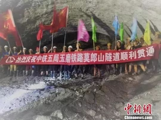 ▲图为莫郎山隧道贯通。(中国铁路昆明局集团供图)
