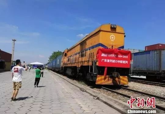 ▲广东首列进口中欧班列抵达东莞石龙。(图片来源:中新网)