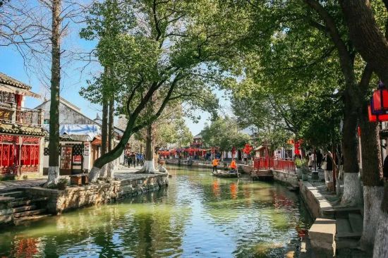 漫步在古朴的建筑群间和青石板路铺成的小路上,小桥流水、柳树垂荫,感受目之所及的春光,欣赏花草的妩媚,是一种非常愉悦和放松的体验。