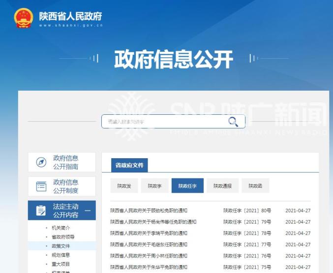 陕西省人民政府今天(4月27日)发布一批人事任免通知。