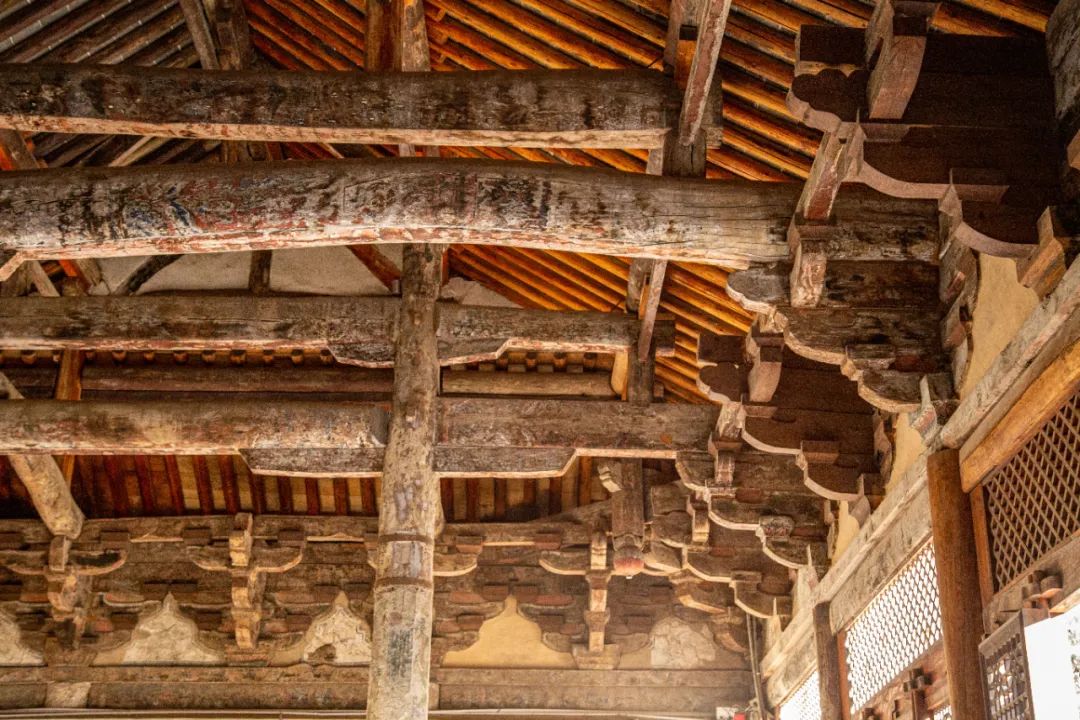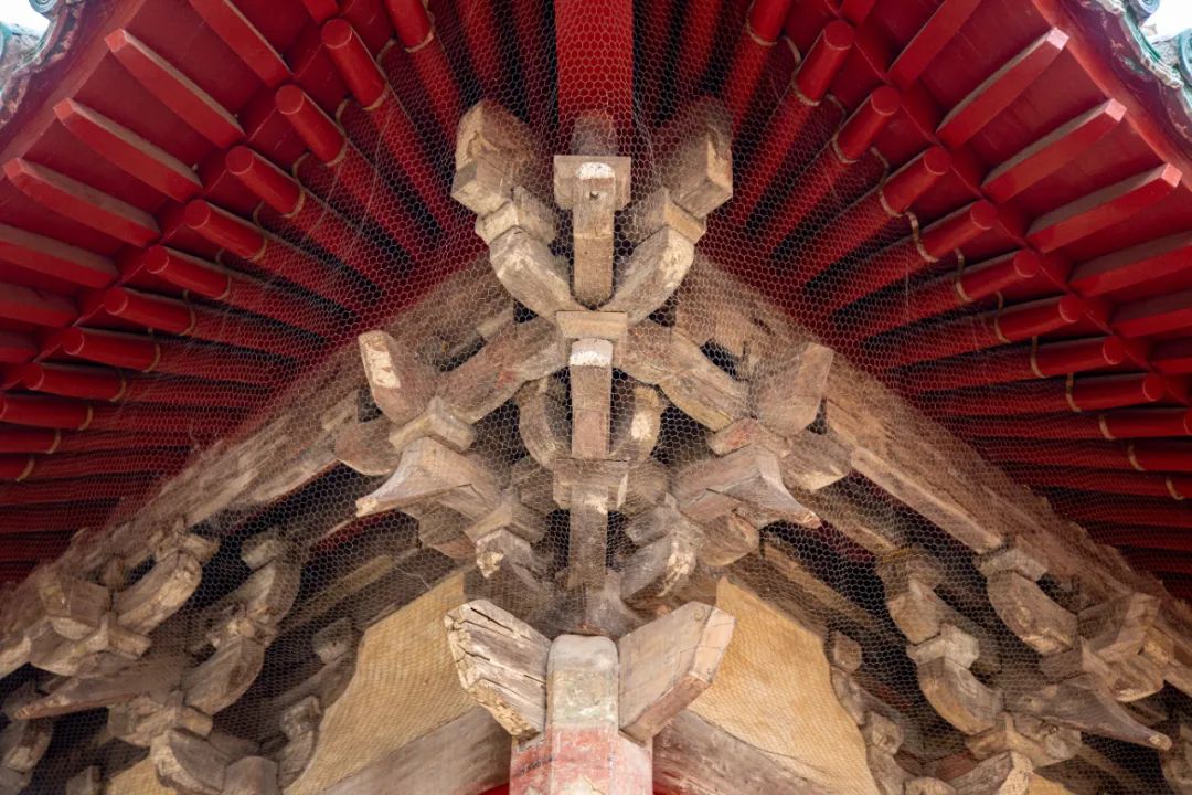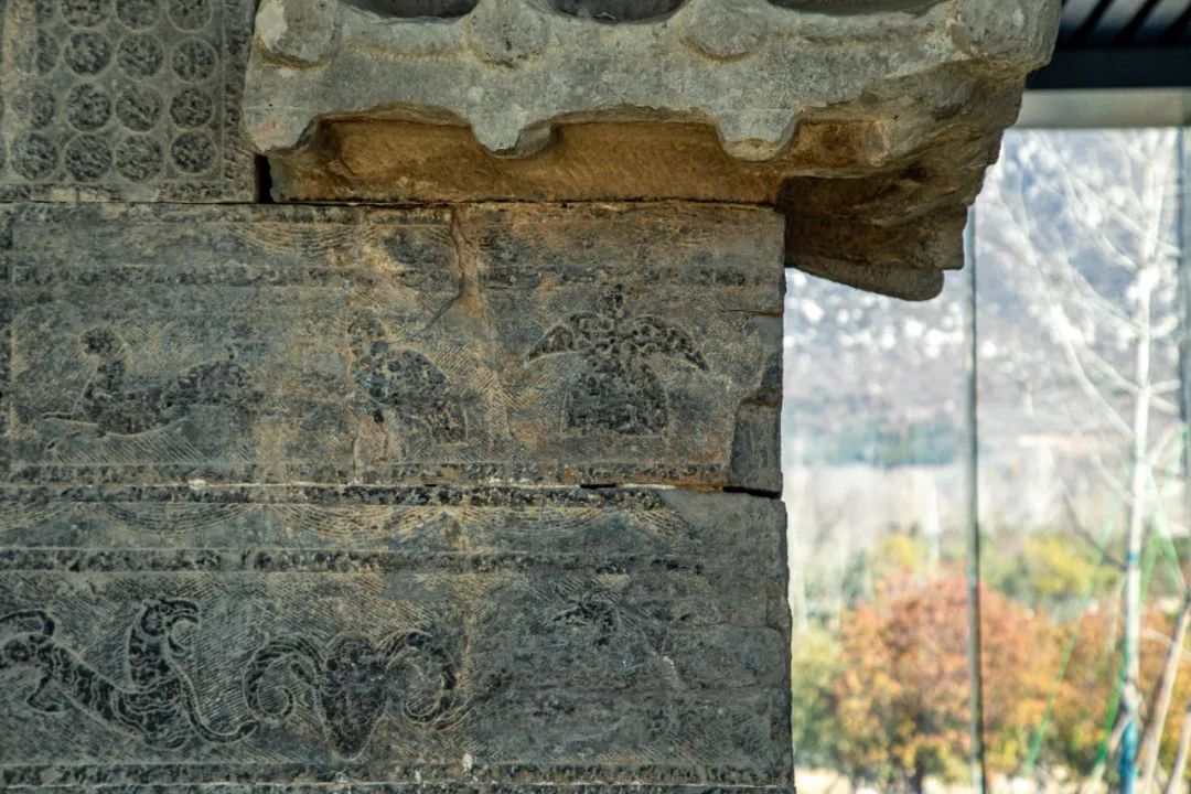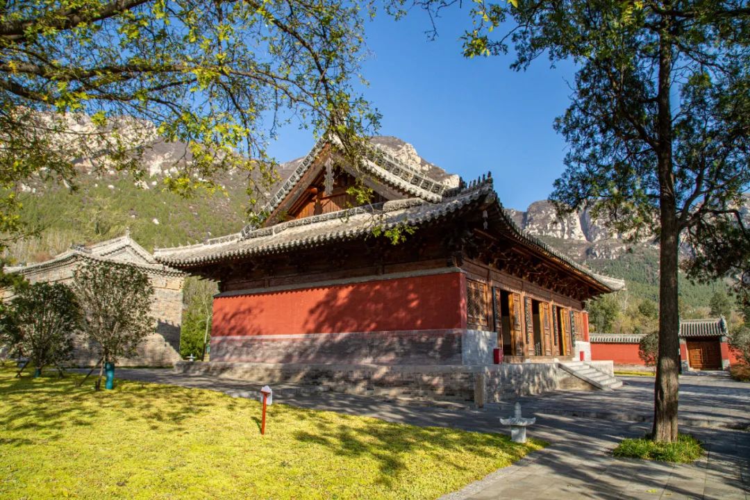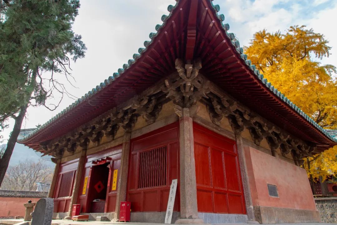 建于北宋宣和七年(1125年)所建的初祖庵,是河南省内现存最古老的木构建筑。大殿内供奉达摩像,如今只能站在殿门外参观,依稀可在黑暗中辨识出墙壁上保留的人物彩绘,以及殿内石柱、神龛须弥座上极为丰富精彩的人物及山水浮雕。
