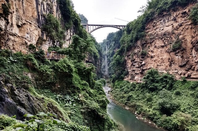 马岭河峡谷全长74、8千米,宽50-150米,最深处280米,素有“天沟地缝”、“地球上最美丽的伤痕”之称,被誉为“中华第一漂”。谷中上百条瀑布、三百万平方米钙华瀑和各种珍稀植物是最大的看点。景观最为奇特、最为著名的是钙化瀑布群——构成了“西南奇缝,天下奇观”,从马岭古桥到天星桥9.7公里段有56条瀑布,终年长泻36条。其中长仅1.7公里的天星画廊段就有万马咆哮瀑、珍珠瀑、面纱瀑、间歇五叠瀑、捞月瀑、洗心瀑、路帘瀑、飞厅瀑等13条。 【 详细>>】