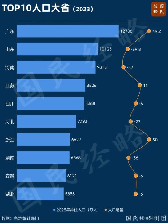 这些省份,去年却全部出现负增长,四川、安徽、湖北减少6万人,山东减少39.82万人,河南下降57万人,为全国之最。