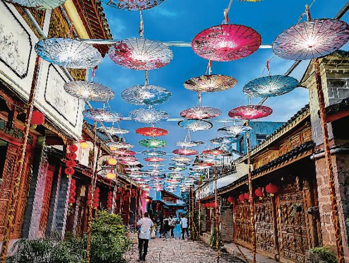 光禄古镇曾是古代南方丝绸之路上“姚嶲古道”的重要节点,是古代姚安地区的政治、军事和文化中心,素有“一座姚州城,半部云南史”之称。今天的光禄古镇,在保护中深入挖掘历史与文化积淀,将梅葛、花灯戏、坝子腔等特色民俗文化与旅游活动相融合,进一步开发打造文旅消费新场景,千年古镇正焕发出新的生机和活力。