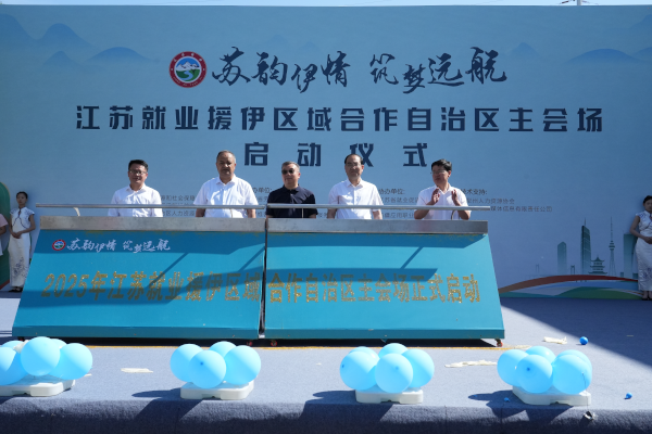 为推动跨区域人才合理流动与资源共享,促进高校毕业生、农村劳动力等重点群体就业,为苏伊两地协同发展注入新活力,5月25日,由江苏省人力资源和社会保障厅、江苏省对口支援伊犁州前方指挥部、新疆维吾尔自治区人力资源和社会保障厅主办的“苏韵伊情・筑梦远航”江苏就业援伊区域合作新疆自治区主会场启动仪式在伊宁市江苏南京援疆产业园举行。