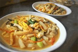 在新昌人的食谱里,年糕不仅是必不可少的家常主食,更是一道具有美好寓意的传统小吃,“吃年糕,年年高”,逢年过节,招待亲朋好友、远归的游子,来一碗热腾腾的“炒年糕”,祝福新的一年里“步步高升”、“学业有成”。