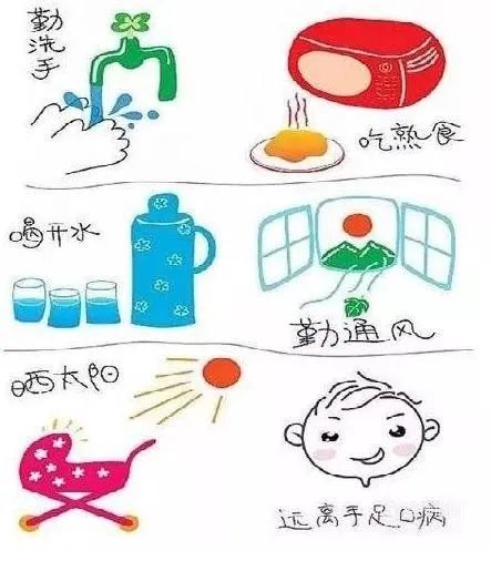 手足口病是由肠道病毒感染引起的一种儿童常见传染病,以柯萨奇病毒A16型(Cox A16)和肠道病毒71型(EV71)最为常见,5岁以下儿童多发。患儿和隐性感染者为主要传染源,密切接触是其重要的传播方式,通过接触被病毒污染的手、毛巾、手绢、牙杯、玩具、食具、奶具以及床上用品、内衣等引起感染,还可通过呼吸道飞沫传播,饮用或食入被病毒污染的水和食物亦可感染。现已进入我省手足口病发病的主要流行季节(4-7月)。