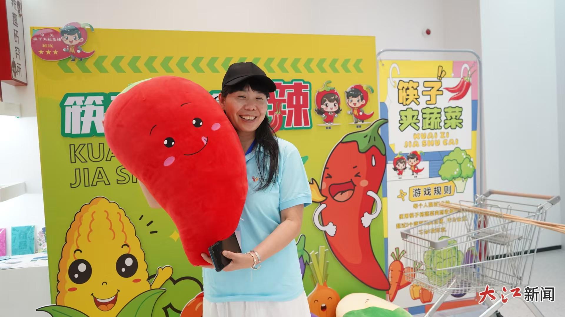 除了买礼品,展销中心还设计了拍照打卡墙、互动小游戏等区域,让人沉浸式感受当地的辣文化。