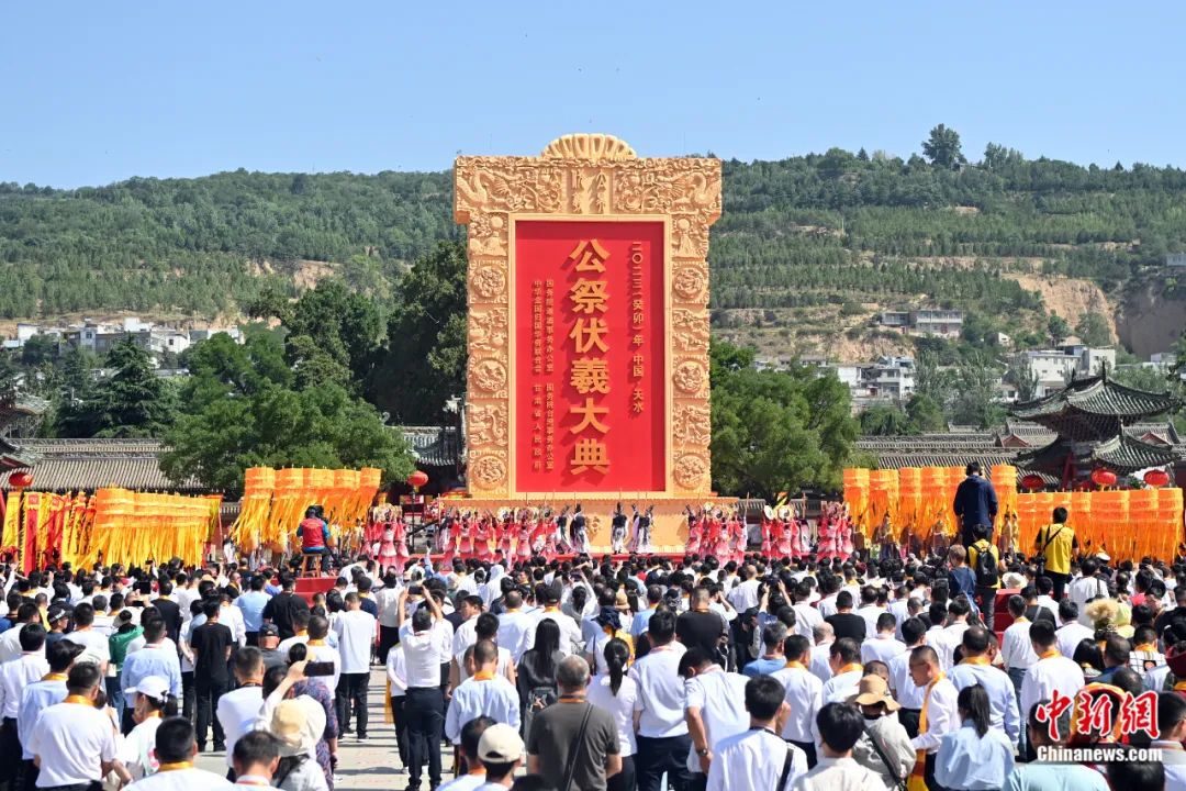 “2023(癸卯)年公祭中华人文始祖伏羲大典”在天水市伏羲广场举行。(资料图)九美旦增 摄