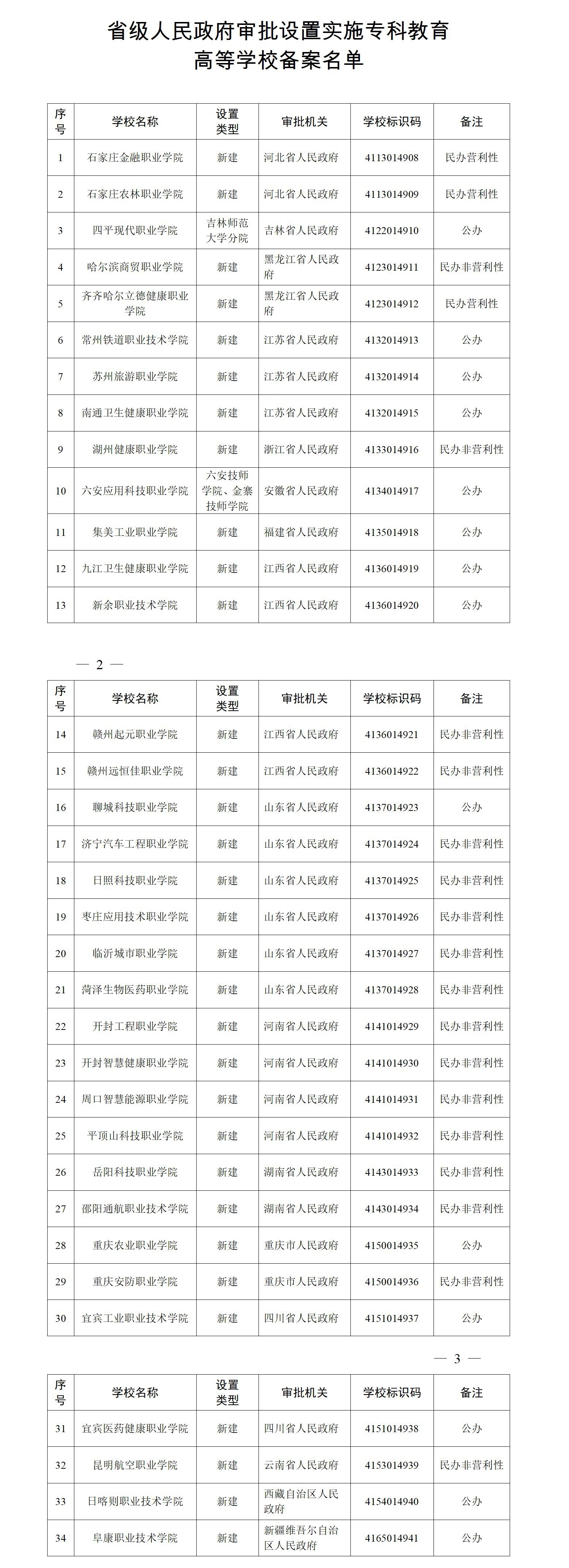 5月28日,教育部官网发布《关于公布2025年度第二批实施专科教育高等学校备案名单的函》,据梳理,本次公布了34所新设专科院校,其中32所院校为新建。