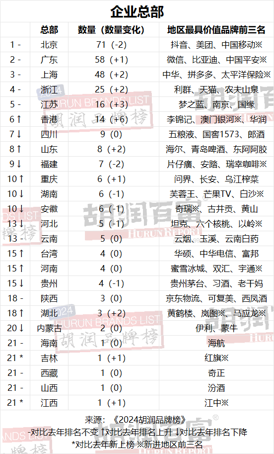 2024胡润品牌榜发布,64个城市300个品牌入选