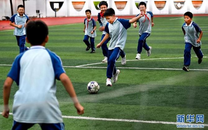 凤凰镇小学的孩子们在校园足球场踢足球(9月12日摄)。活泼的孩子们期望中国足球能从乡村走向世界。