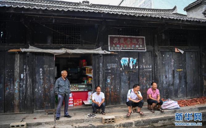 凤凰镇老街居民一边守着商铺,一边聊天,其乐融融(9月11日摄)。