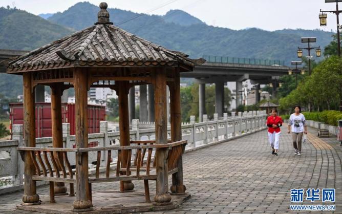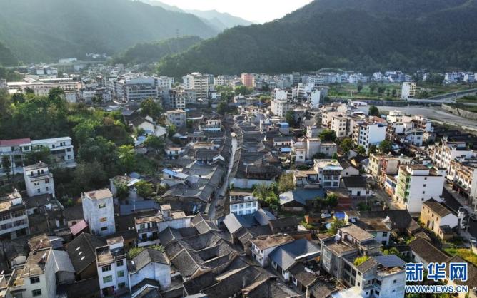 无人机拍摄的凤凰镇新旧街道景色(9月13日摄)。愿你走进这座深山的古镇,散心、闲逛、发呆……细细地感受更多的情愫。