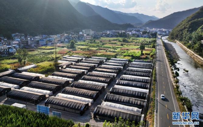 俯瞰凤凰镇木耳大棚(9月13日摄)。凤凰镇把发展木耳产业作为践行绿水青山就是金山银山理念、每年木耳产量达13万公斤,“小木耳”已经成为拉动当地经济增长、促进农民增收致富的“大产业”。