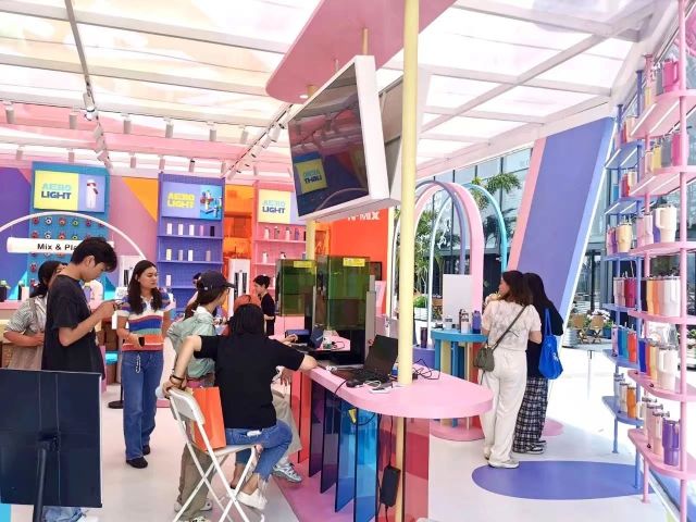 在STANLEY的灵感“彩”集所保温杯主题快闪店里,五彩缤纷的多巴胺配色,为浪漫初夏带来更多遐想与欢畅。