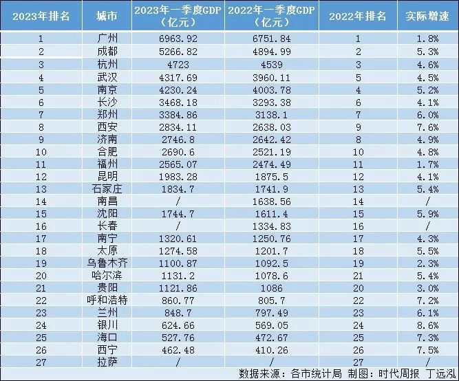 目前,已有广州、成都、杭州、武汉等24个省会城市公布了一季度经济运行情况。总体而言,各省会城市的经济在今年的前3个月里,均实现了不同程度的正增长。