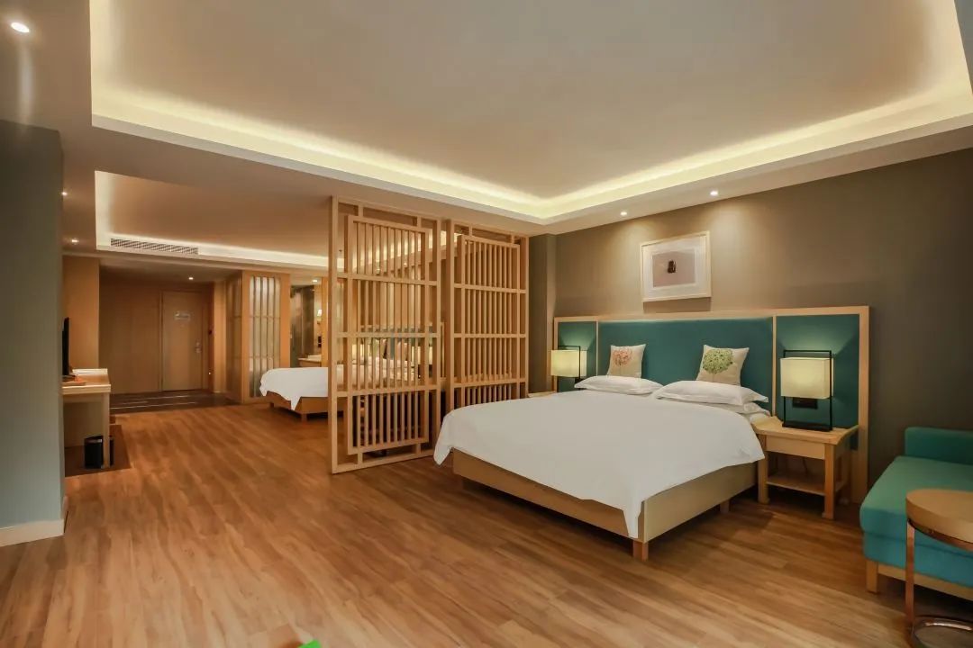 隐于山林深处,独享山水秘境。40-70㎡的客房宽敞明亮,独立阳台将云雾青山尽收眼底。