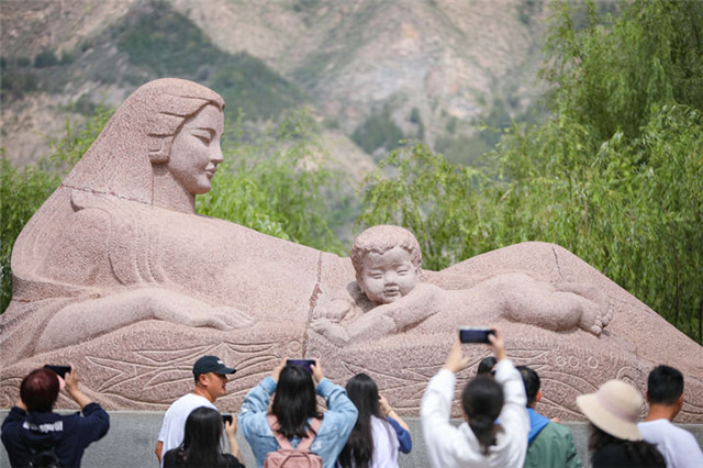 这是9月8日在兰州市七里河区拍摄的黄河母亲雕塑。新华每日电讯记者 郎兵兵 摄