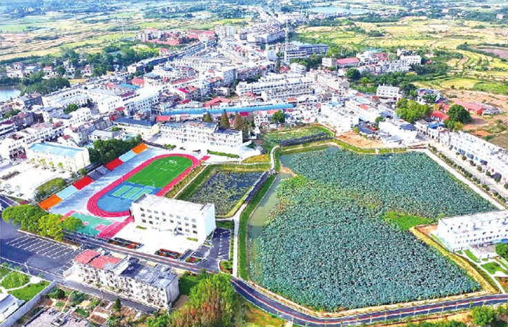 10月25日,应城市杨岭镇镇区航拍图。今年以来,杨岭镇党委政府着眼“补短板、强功能、提品质”,全力推进功能城镇建设,重点建设文化体育广场,推动形成一个集居民休闲、运动健身、便民服务、交通服务、文化展示、特色农产品销售等多项功能的综合阵地,满足群众多元化的需求。