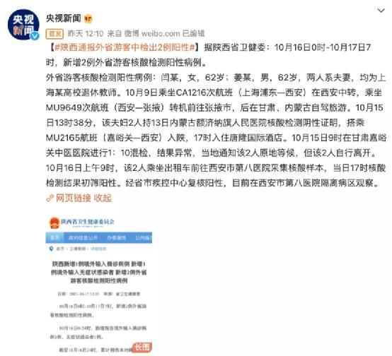 10月16日,2名上海游客,一对退休教师夫妻,在西安市第八医院被筛查出新冠阳性。