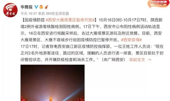确诊的上海游客到过的大雁塔景区,与大唐不夜城步行街、浐灞国家湿地公园、西安世博园。