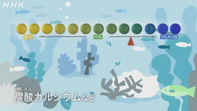 ちなみに雨は、大気中の二酸化炭素(にさんかたんそ)がとけているから酸性(さんせい)なのです。海は、炭酸カルシウムなどの成分(せいぶん)がとけているからアルカリ性。でももし、今よりもたくさんの二酸化炭素が海にとけこむと、アルカリ性から中性に近づき、サンゴや貝などが成長しにくくなります。ちょっとした水の性質(せいしつ)の変化(へんか)が、生き物たちの環境(かんきょう)にも影響(えいきょう)をあたえるのです。それはどんな水? 透明(とうめい)な水の裏(うら)がわに、見えなかった世界がある…。