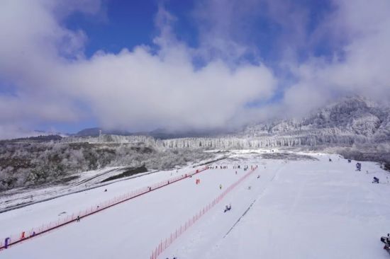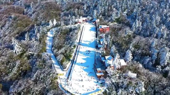 峨眉山雷洞坪滑雪场位于峨眉山风景区内,占地面积15亩,冬季平均气温-5℃,积雪期4个月。滑雪场内雪道配置及分布合理,有长300米、高30米、平均坡度9°可同时容纳300人滑雪的高山滑雪道1条;有面积800平方米,地势平坦,可同时供100名初学者练习的初级滑雪区;有长150米魔毯1条和长120米、宽10米的飞碟、飞船、滑雪圈道1条。滑雪场配备有奥地利进口滑雪板600副,滑雪飞碟、飞船、滑雪气垫圈等共计80个,美国产造雪机4台、雪地车4台。