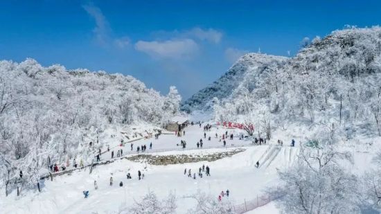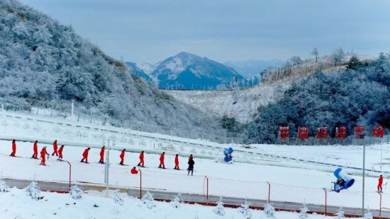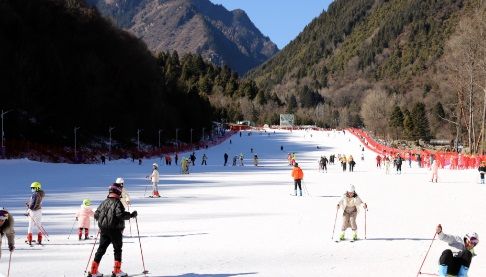 九皇山滑雪场位于海拔2000米的羌山,被数千亩林海雪原环抱其中。顺着坡道滑下,在飞速滑翔中体验高山滑雪的刺激与心跳。