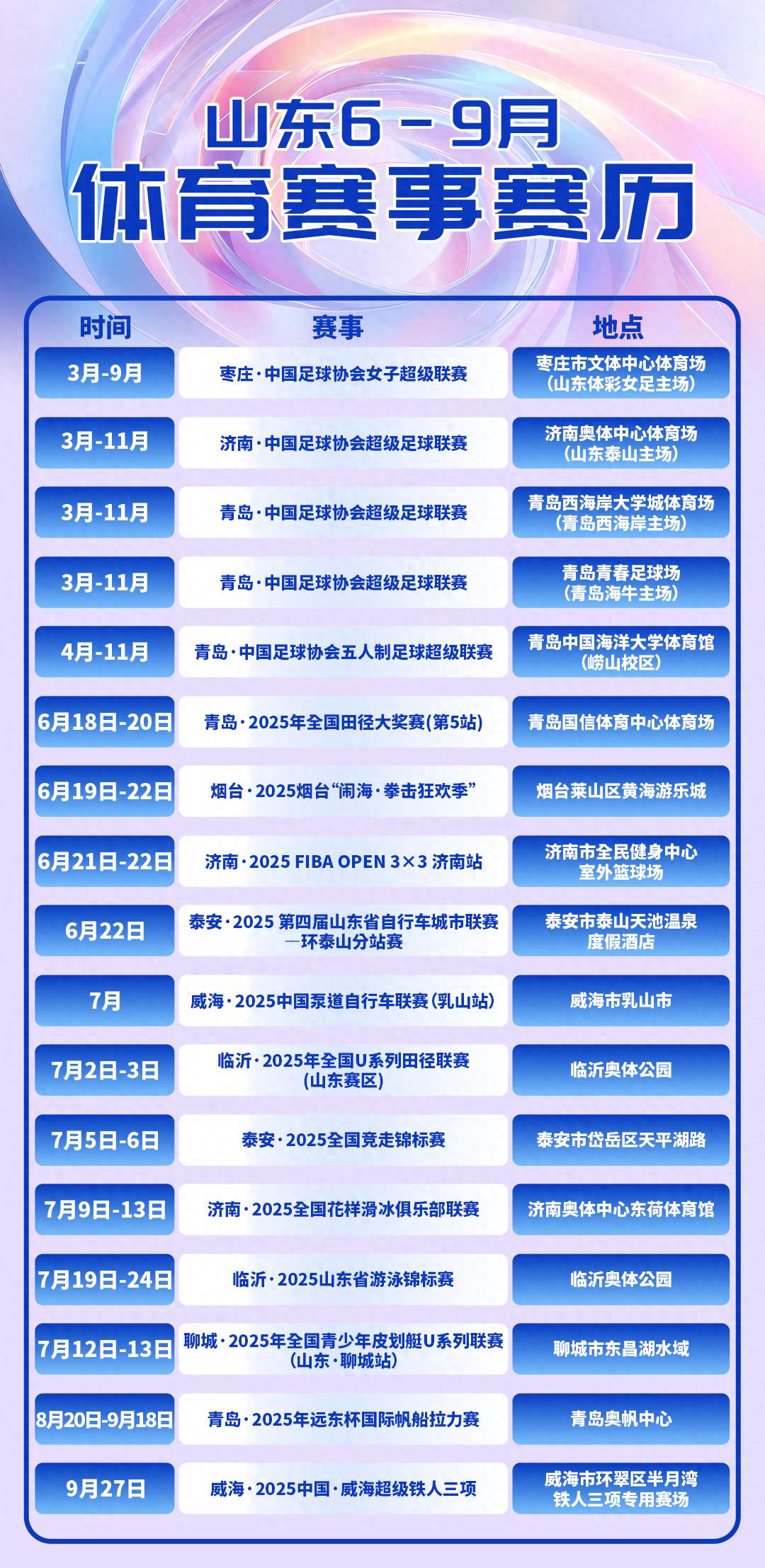 一场场活力四射的体育盛宴,正等待为齐鲁大地点燃夏日激情。