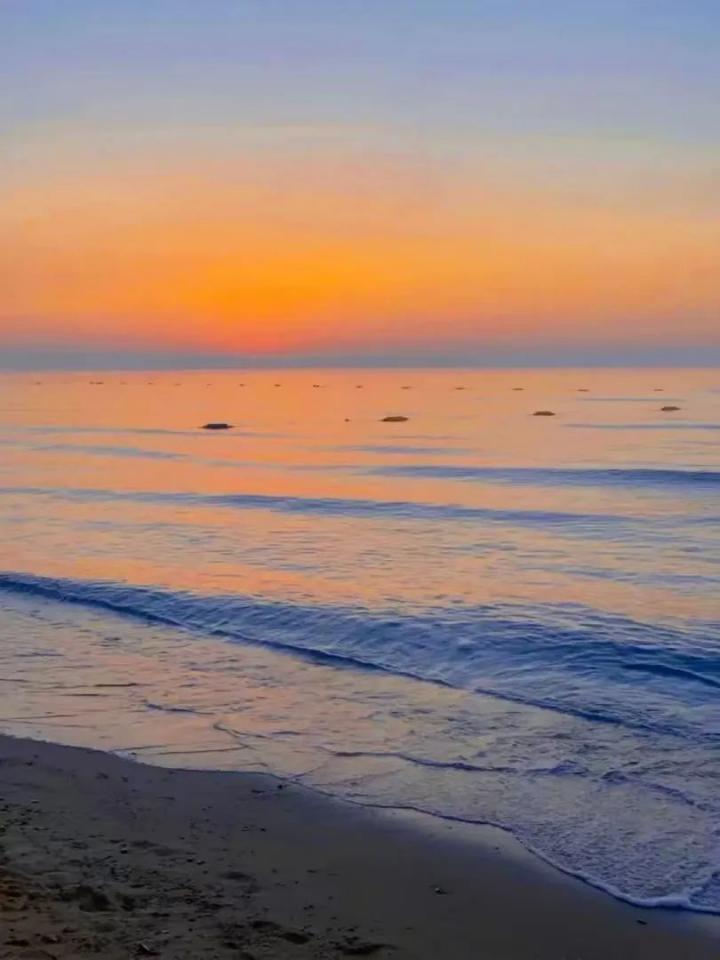 铁人三项赛场所在的半月湾,宛如一弯新月镶嵌在威海海岸线上,海水清澈见底,沙滩平缓细腻,是欣赏日出的绝佳地点。