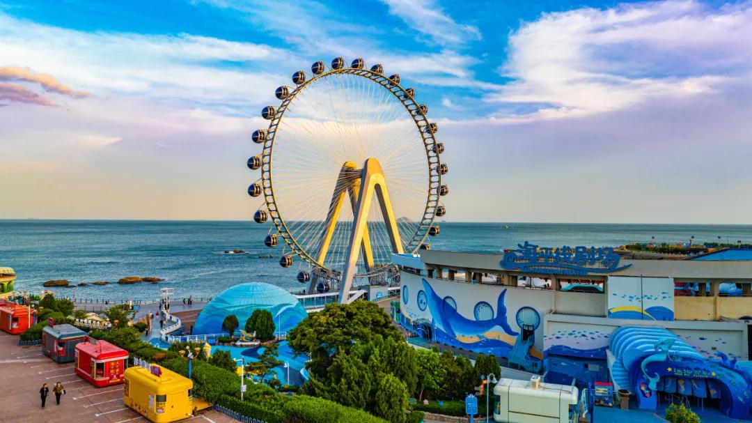 被赵立坚点赞的极地之光·青岛海上摩天轮,东邻石老人海水浴场、西连小麦岛,总高度约66米,共配备30个360°全景透明轿厢,每个轿厢可容纳8至10人。