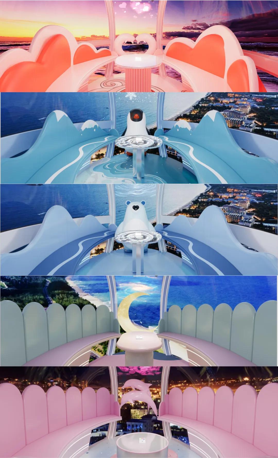 爱情、亲子、海洋、动物、网红,五大沉浸式主题轿厢,氛围值拉满,承包你与青岛的独家记忆。