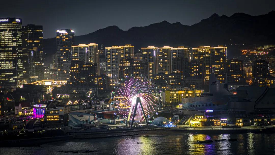 夜幕降临,摩天轮化身巨型“海上光幕”,10万颗LED灯珠点亮青岛海岸线,绚丽夺目,令人怦然心动。