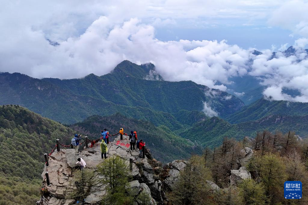 游客在位于宝鸡的秦岭太白山景区游览(2024年5月10日摄)。