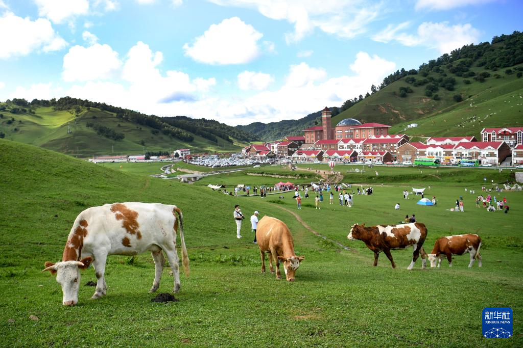 位于宝鸡市陇县的关山草原景区(无人机照片,2024年8月2日摄)。