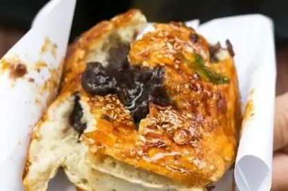 高桥松饼酥皮层次分明,每层薄如纸,又被称为“千层饼”。这可是高桥人传承百年的本帮糕饼,饼边雪白,咬一口,酥到掉渣,内里还夹着豆沙馅、核桃馅、红枣馅。