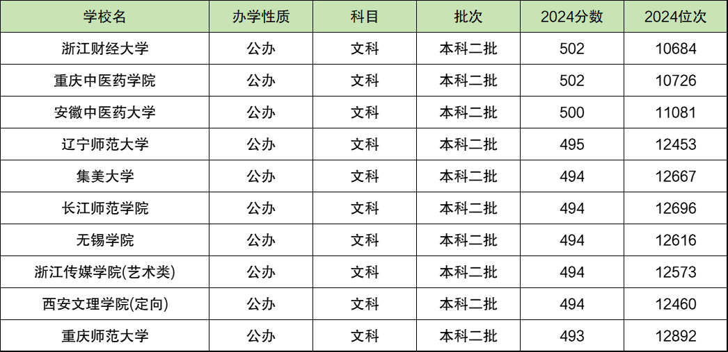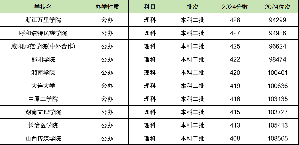 本文就以陕西文科和理科2024年的数据为例,为大家分别整理出公办二本大学在陕西文科和理科分数线最高和最低十所院校录取情况。
