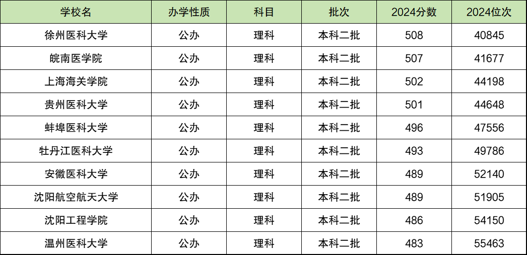 公办二本大学在陕西理科最高分数线是508分,对应的院校是徐州医科大学,该分数超过二本批次线136分,超过一本批次线33分。