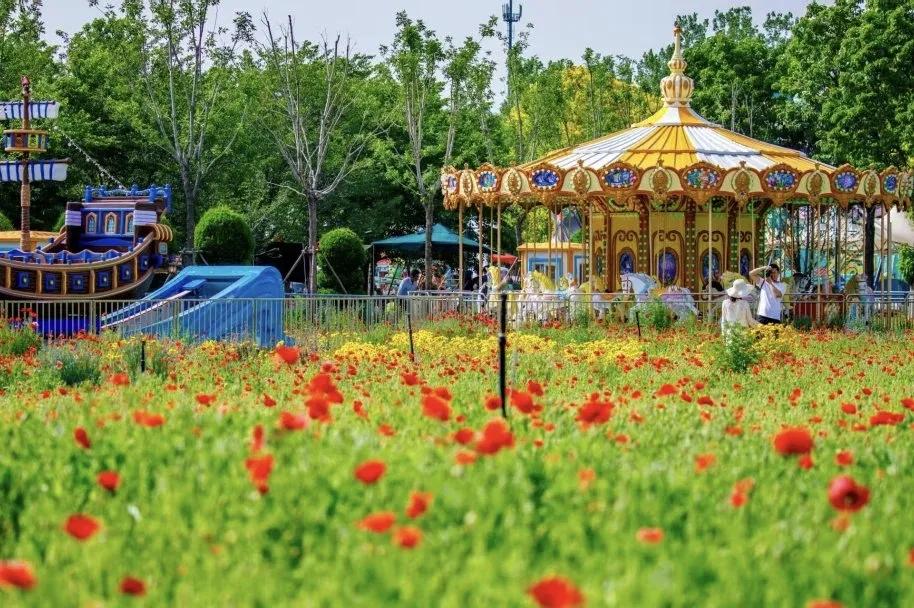 夏天的济南国际鲜花港花开满园,坐拥四季花海约3万㎡,一年四季花开不断。
