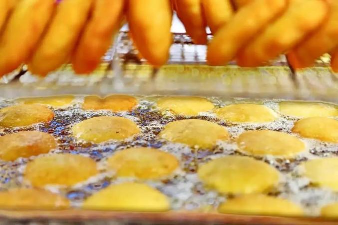 在贵州各个古镇或旅游区常见的粑粑,红苕切块用面粉裹上后油炸,口感呈现出红苕鲜甜的味道。